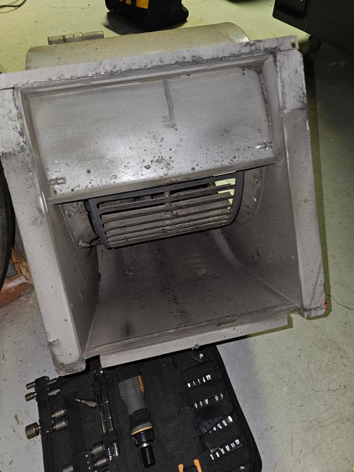 3) The blower: This was pulled out for cleaning because the fans are typically filled with dust.